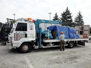 | 6/03(金)被災地へ。 | 午前中、大阪を出発。 愛知県の級社ワタナベ重機さんにて、前日、大阪から出荷した44箱の物資の明細書を作成し、搬送物資準備をしました。 また、すでに手配をかけ、倉庫で保管いただいている物資より、今回搬送予定の物資を選び、積載準備をいたしました。 ![]() この日、ワタナベ重機さんは、みなさん、大忙しでした。 到着したときは、オーナーのお母様がいらっしゃいました。 お仕事のお邪魔にならないように、到着後、すぐ作業を開始しました。 龍清さんは、お仕事の合間を縫って、フォークリフトのオペレイトに来てくださいました。 炎天下の下、箱の詰め替え作業をお手伝いくださり、またその合間を縫って、お知り合いからの救援物資を、引き取りに行ってくださったり、と、夜までお付き合いくださいました。 今回の搬送は、渡辺社長。 この日、終日現場に出ておられましたが、夕方、帰社後、休む間もなく、物資の積載作業に。 ![]() ありがとうございました。 準備が整ったのは、20時を過ぎてから。 ![]() いつもの勇姿で、龍清さんのお見送りを受けながら、いざ岩手に向けて出発致しました。 |